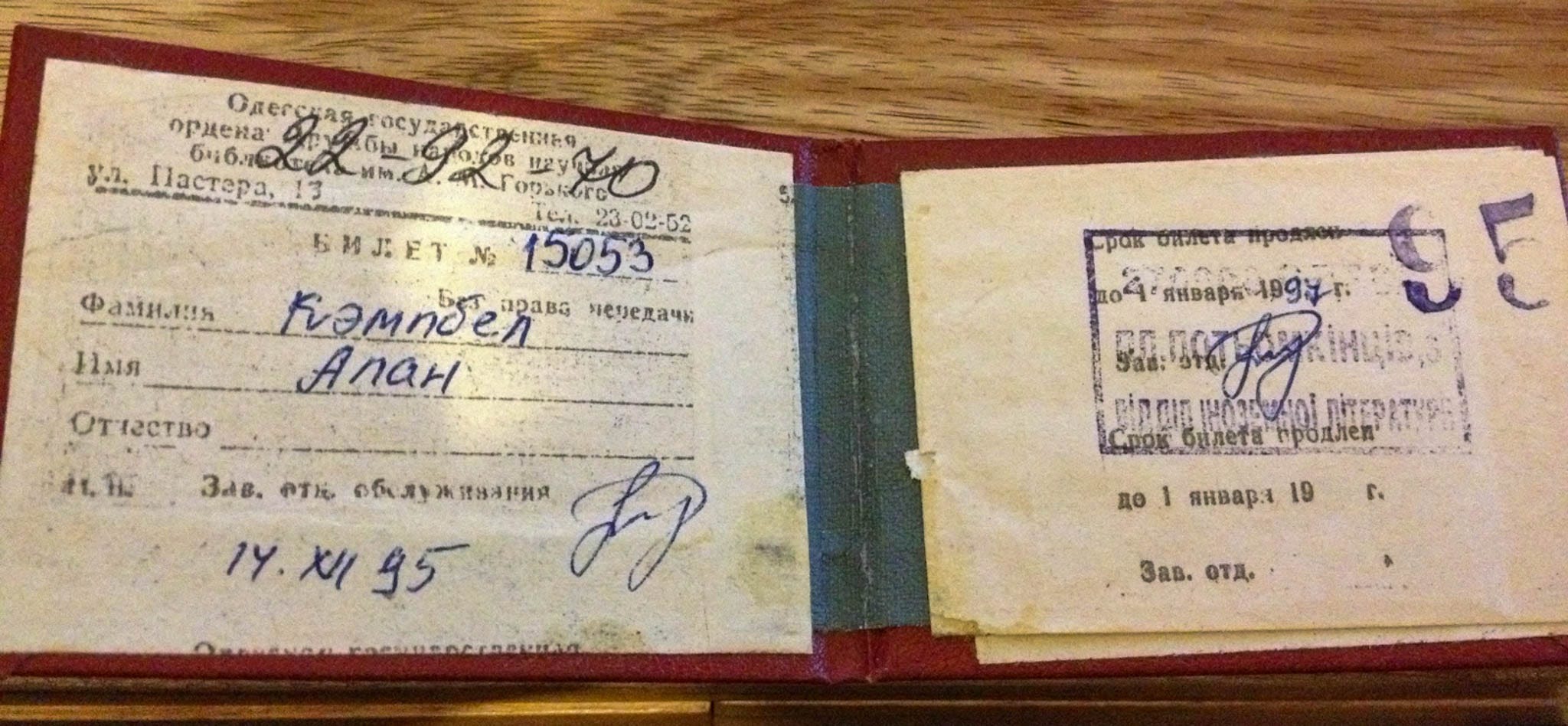 I also got a membership of the Odesa State Library to do research for my dissertation, which I wrote on the Odesa Opera and Ballet Theatre.