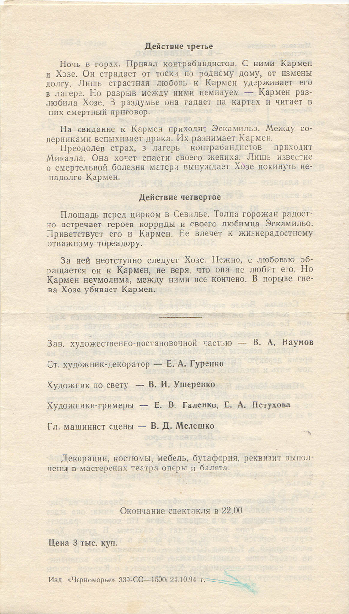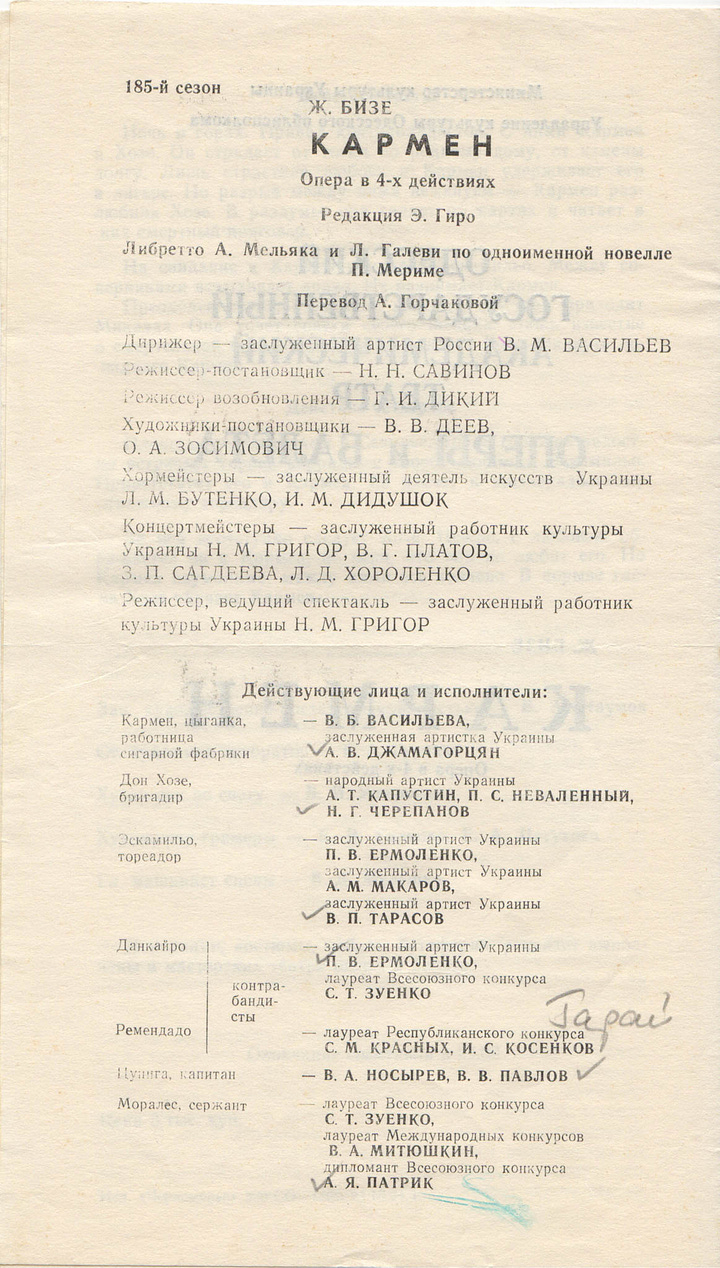 This list is from what I noted in my diary and kept programs for. Some of them I’ll have seen multiple times and there are probably others that I’ve not got programs for. It’s interesting to note that, of all the programs I have, the only one in the Ukrainian language was Madame Butterfly. I would imagine that it’s quite different today.
