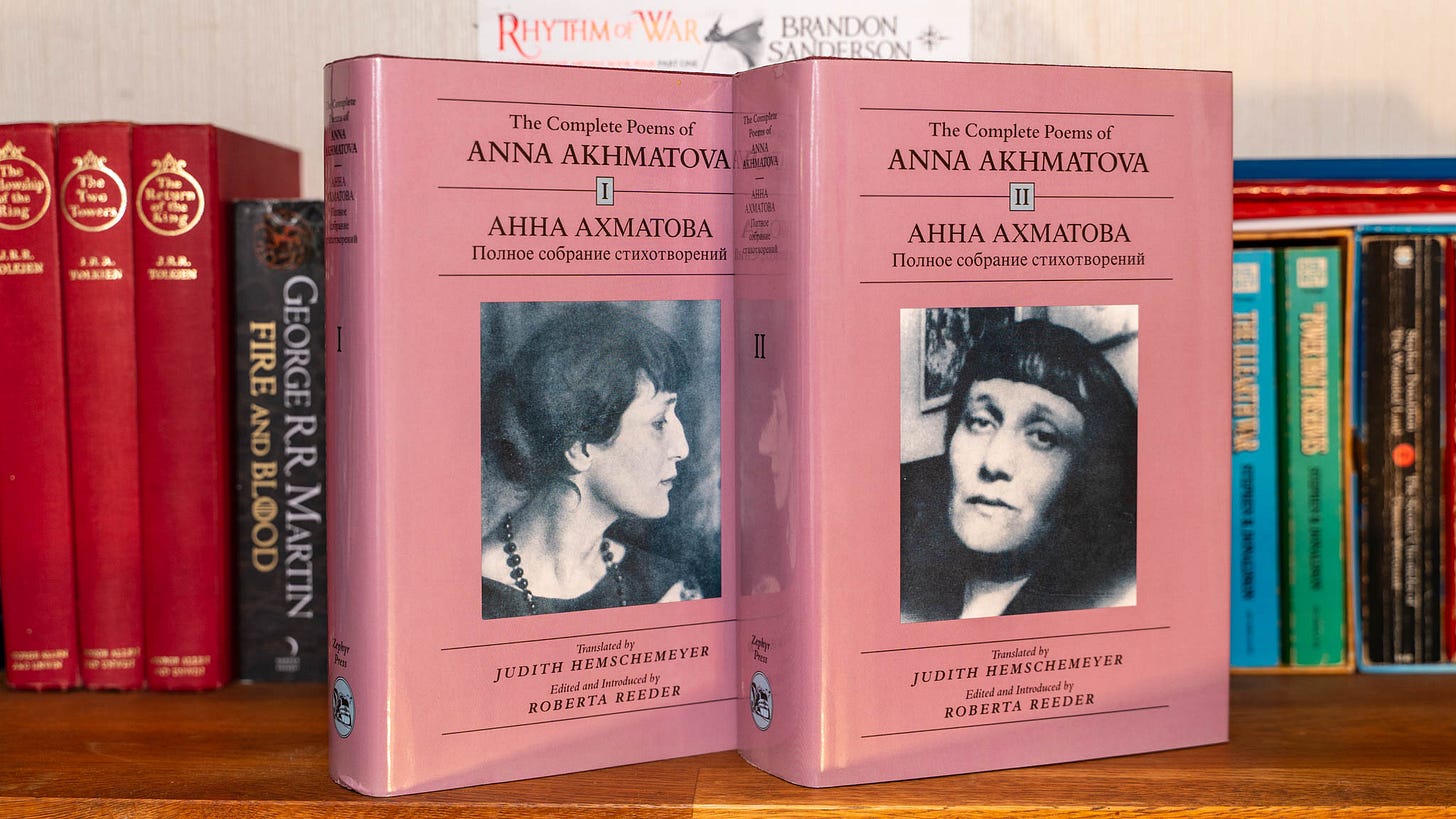 I recently bought this two-volume set and have plans to read them out for my BookTube channel as a means of getting into Akhmatova’s poetry more deeply.