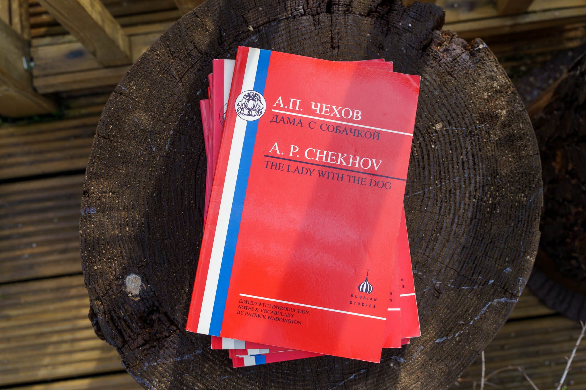 My first term paper was on Chekhov’s short story, Lady with the Lapdog. We used these fantastic readers with red covers published by Bristol Classical Press. They had a Russian-English glossary at the back and stress marks printed over all the vocabulary to aid reading.