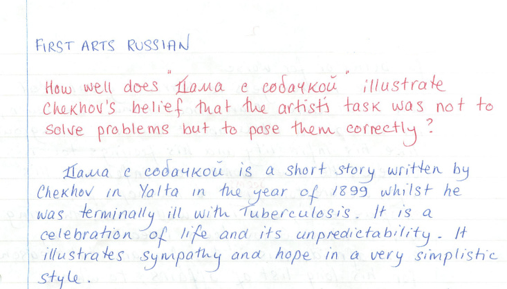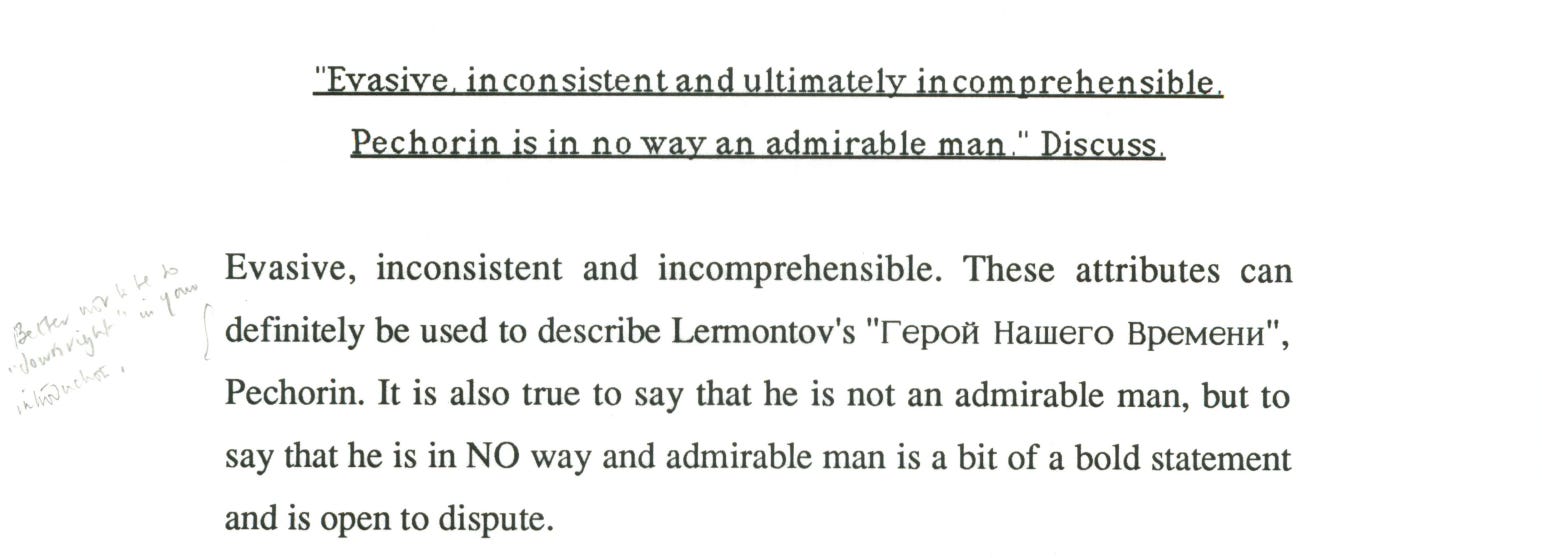 Another typed essay with hand-written Russian quotations. I did okay, scoring 14/20, but I was still getting a hard time for not answering the question.