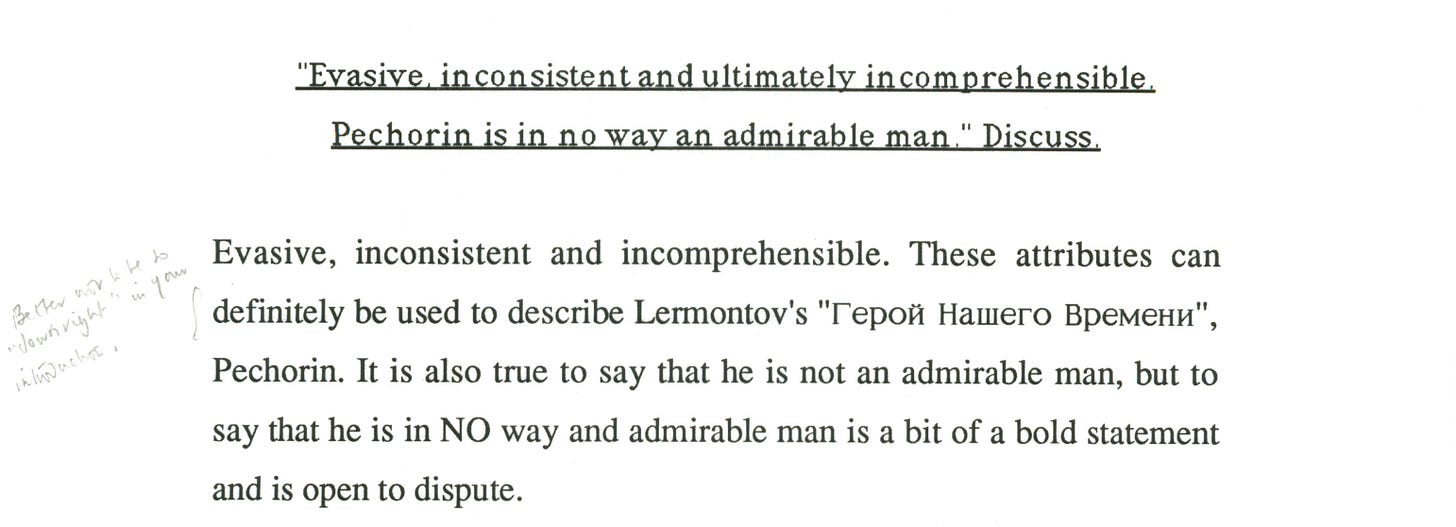 I remember that the main character was considered an anti-hero or a ‘superfluous man’ and not much else. Still, I did okay, scoring 60 marks.