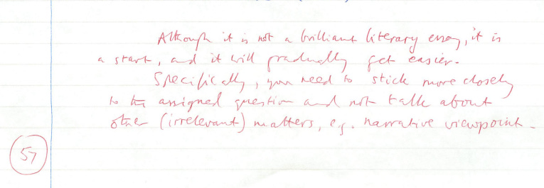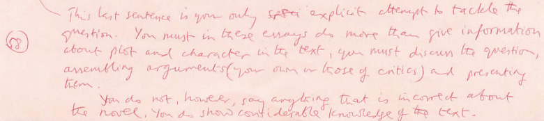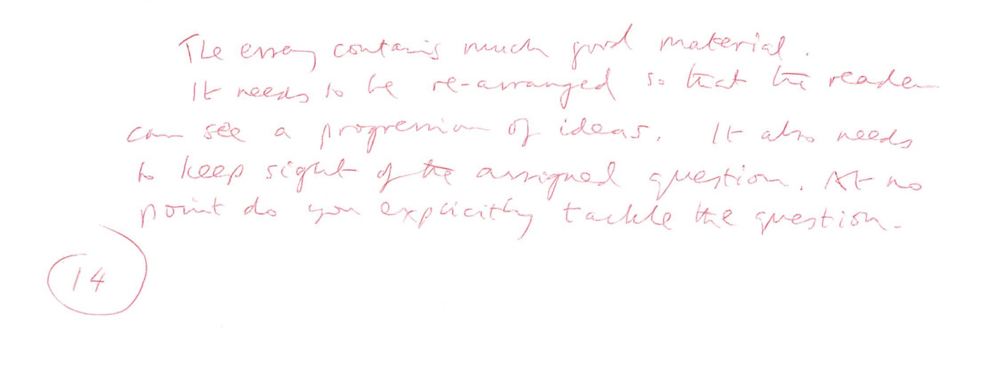 In my tutor’s remarks, it was the first time I was pulled up for not answering the question properly. It wasn’t the last! In fact it got so bad that I would have to write out the essay question and pin it up in front of me to refer to after each paragraph.