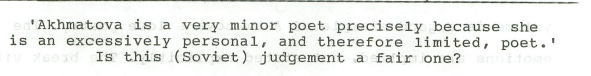 My enduring memory of studying Akhmatova is of writing an essay on a Saturday afternoon in the reading room at Albany Park. I had a room there for second year, sharing with a bunch of pals from first-year halls.