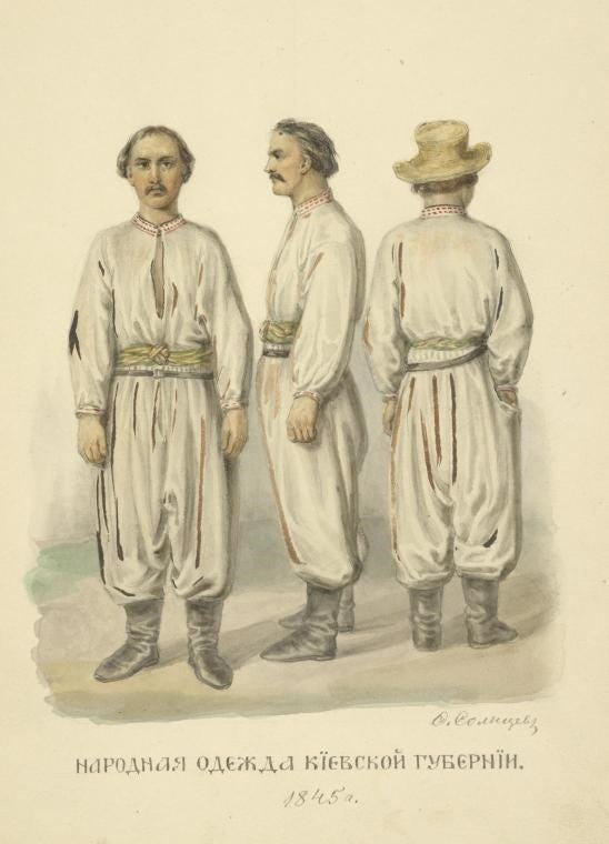 I LOVE seeing the translation comparisions (I'm reading Roger Cockrell's), as well as the images of the Karbovanets Ukranian currency and the sharovary trousers, neither of which I'd taken the time to look up. Thank you for including those.