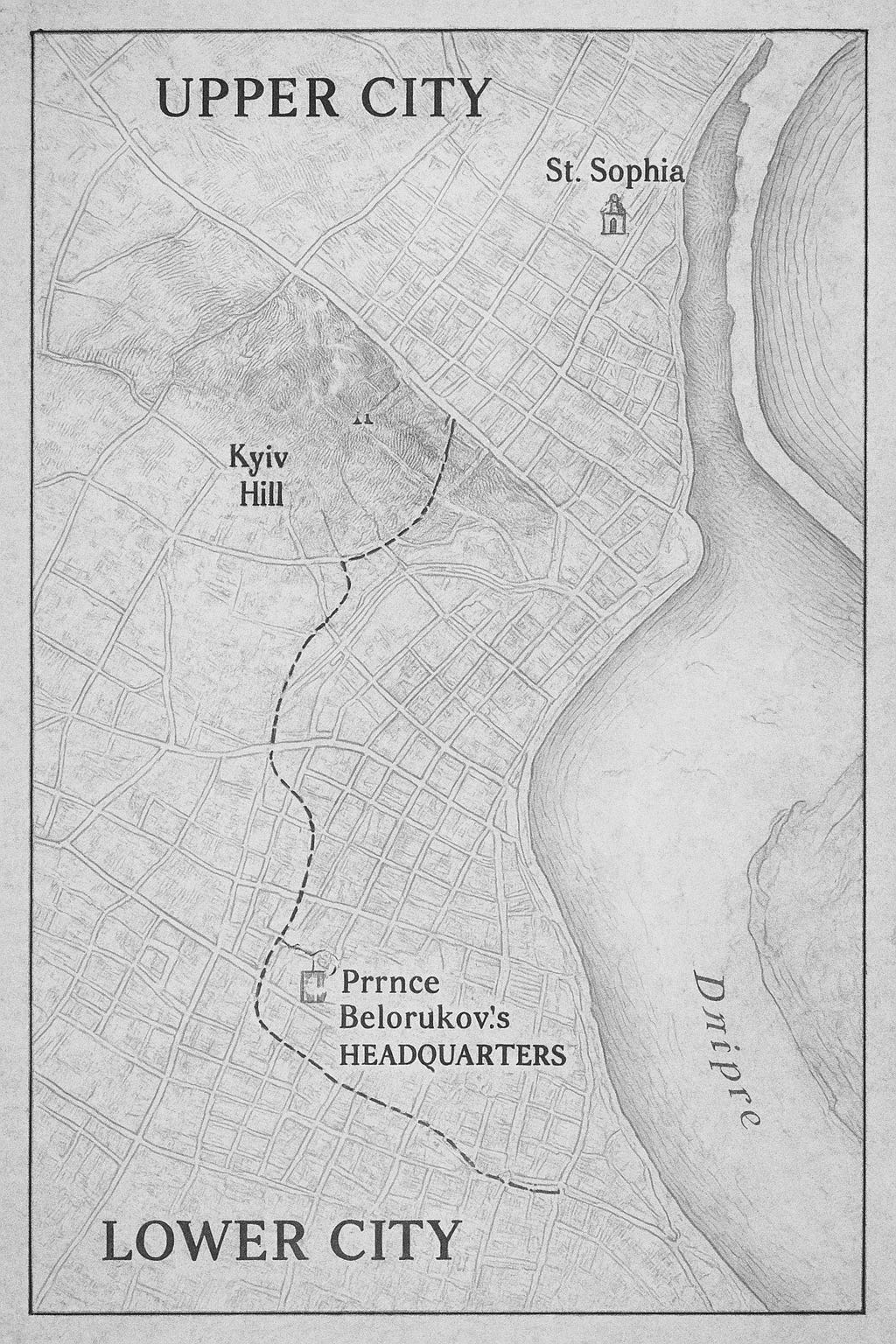 Upper City (Old Kyiv / Upper Town) — the historic, elevated heart of Kyiv that contains St Sophia, St Michael’s, St Andrew’s, St Vladimir’s Hill, and several government, ecclesiastical and aristocratic addresses. It overlooks the river and the merchant quarter below.